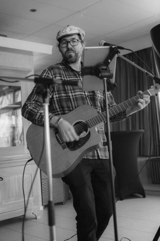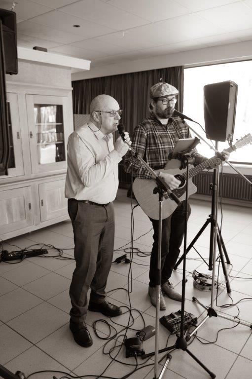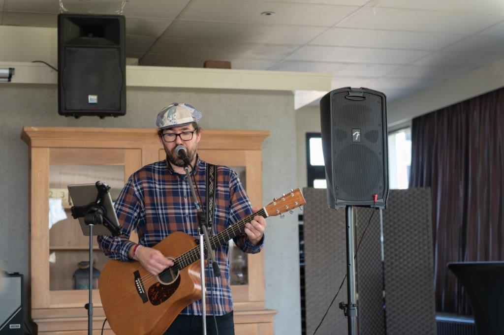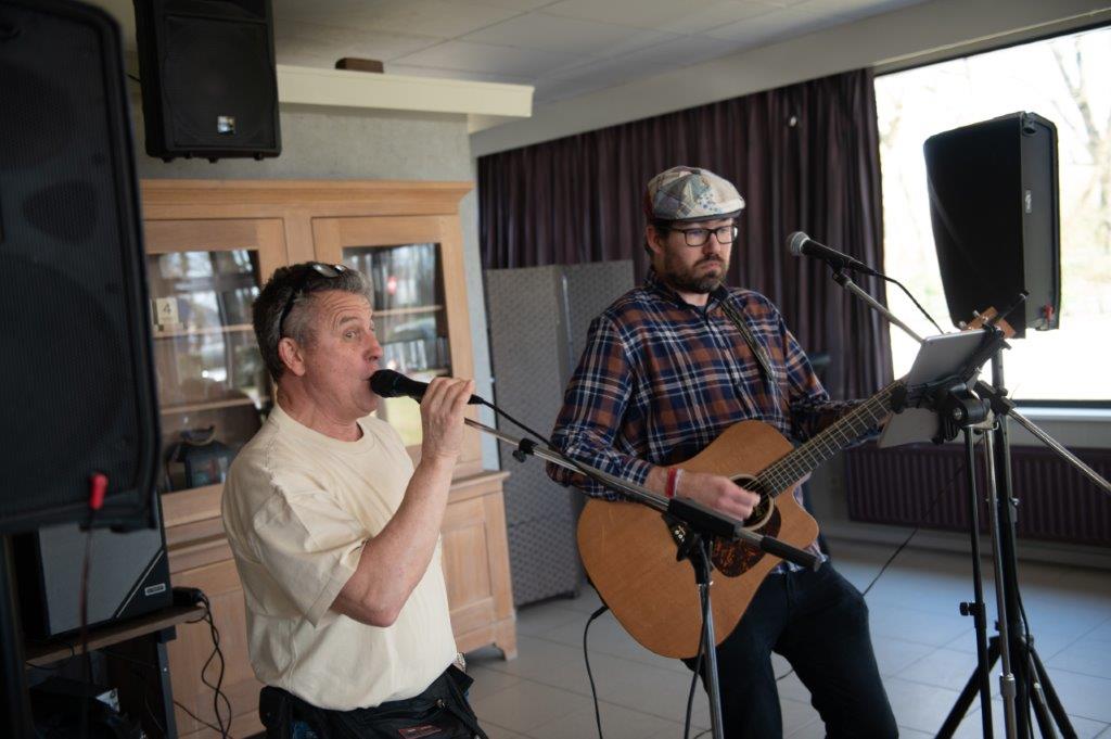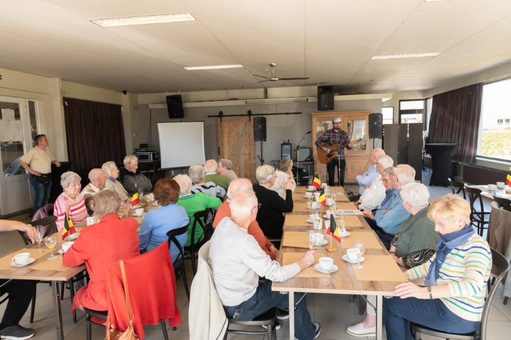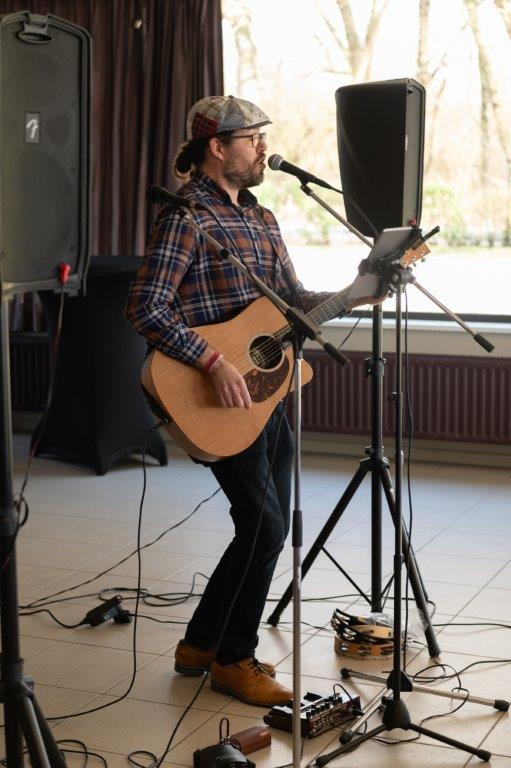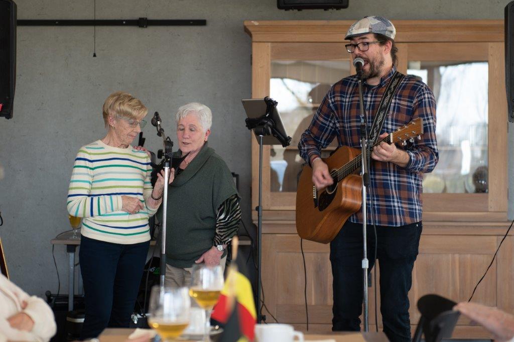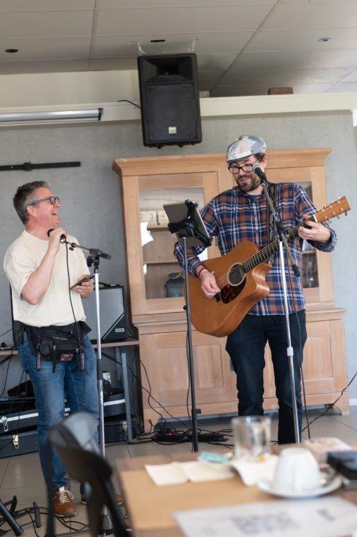 Zodat iedereen niet enkel mocht proeven van een lekker stukje taart met koffie, maar tevens van de prachtige stem van Dave en zijn gitaar.